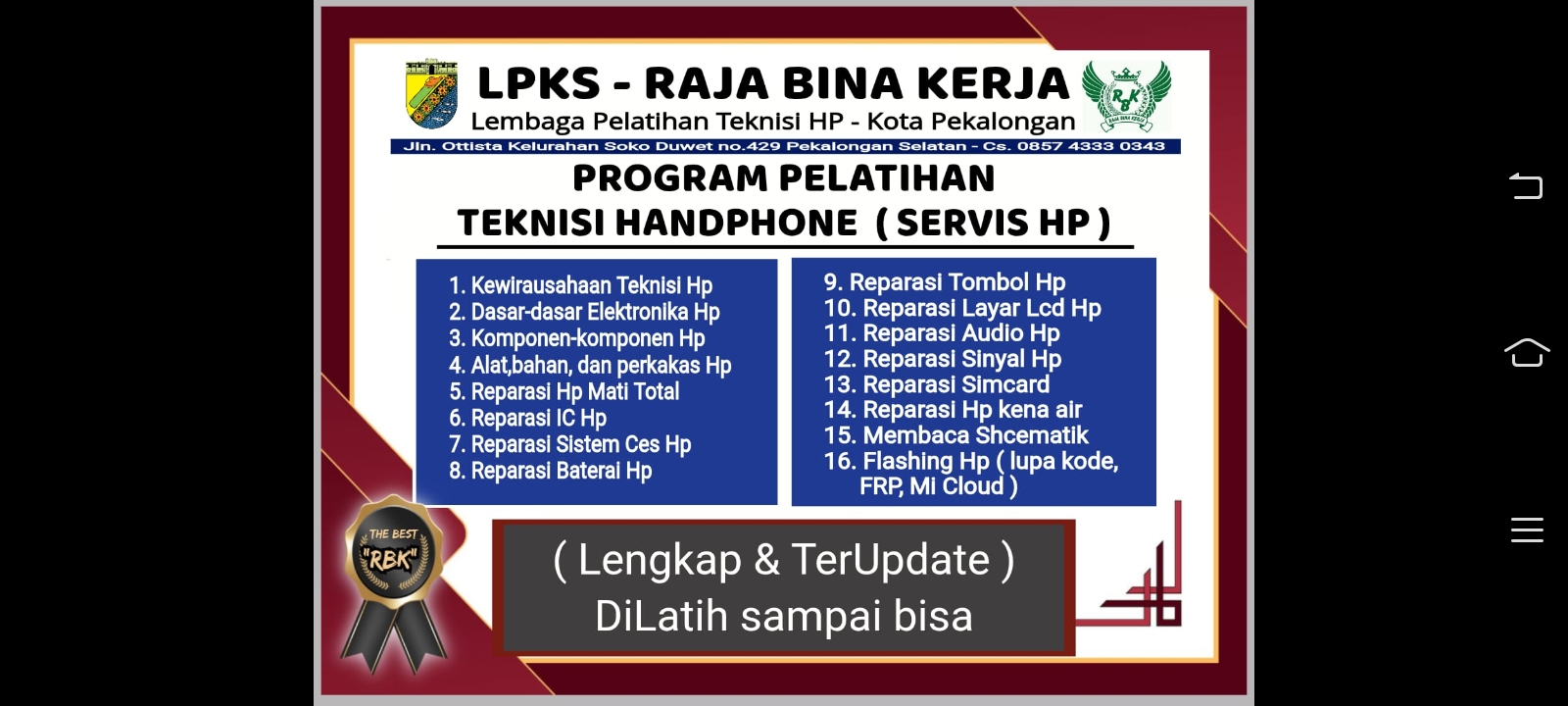 Selama Pelatihan berlangsung LPKS Raja Bina Kerja memberikan para peserta Toolkit secara gratis untuk menunjang pelatihan teknisi handphone